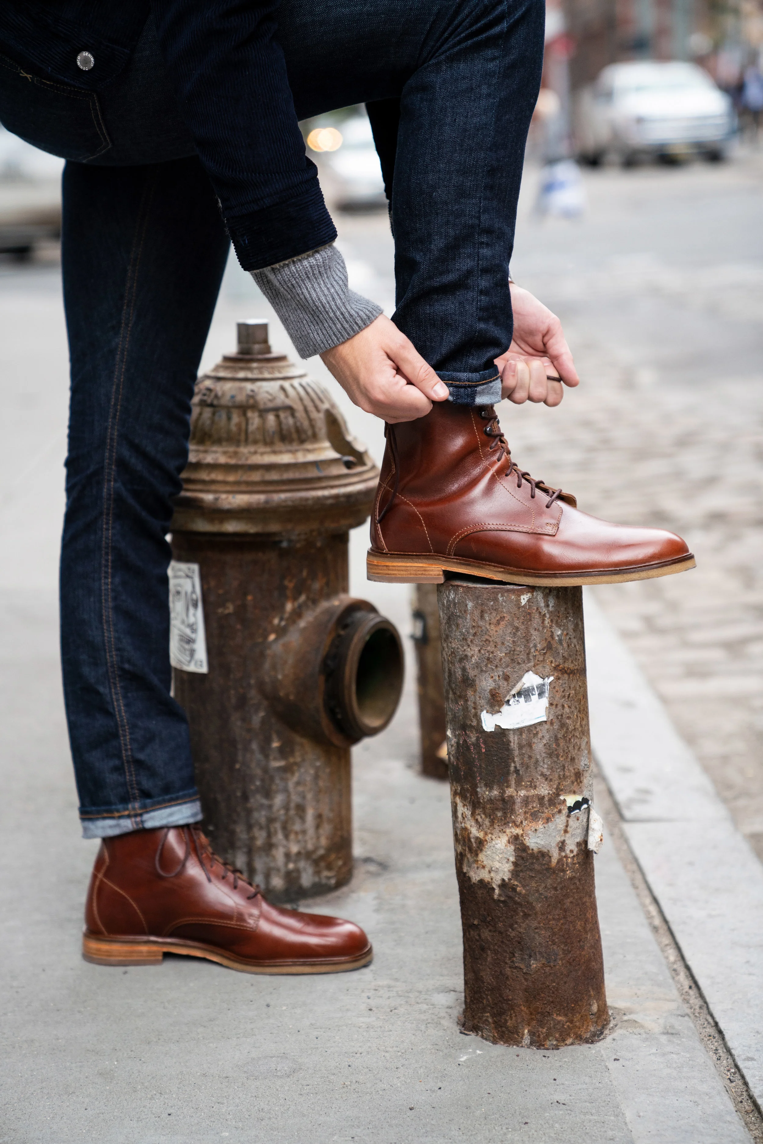 2) I’m a sucker for a taller boot that has speed hook eyelets at the top (those are the little silver or brass clips that you wrap the laces around). It’s a classic style that will never go out of fashion. Mixed-media boots are fine, but this style is clean and classy. It can be worn with a suit just as easily as a pair of denim.
